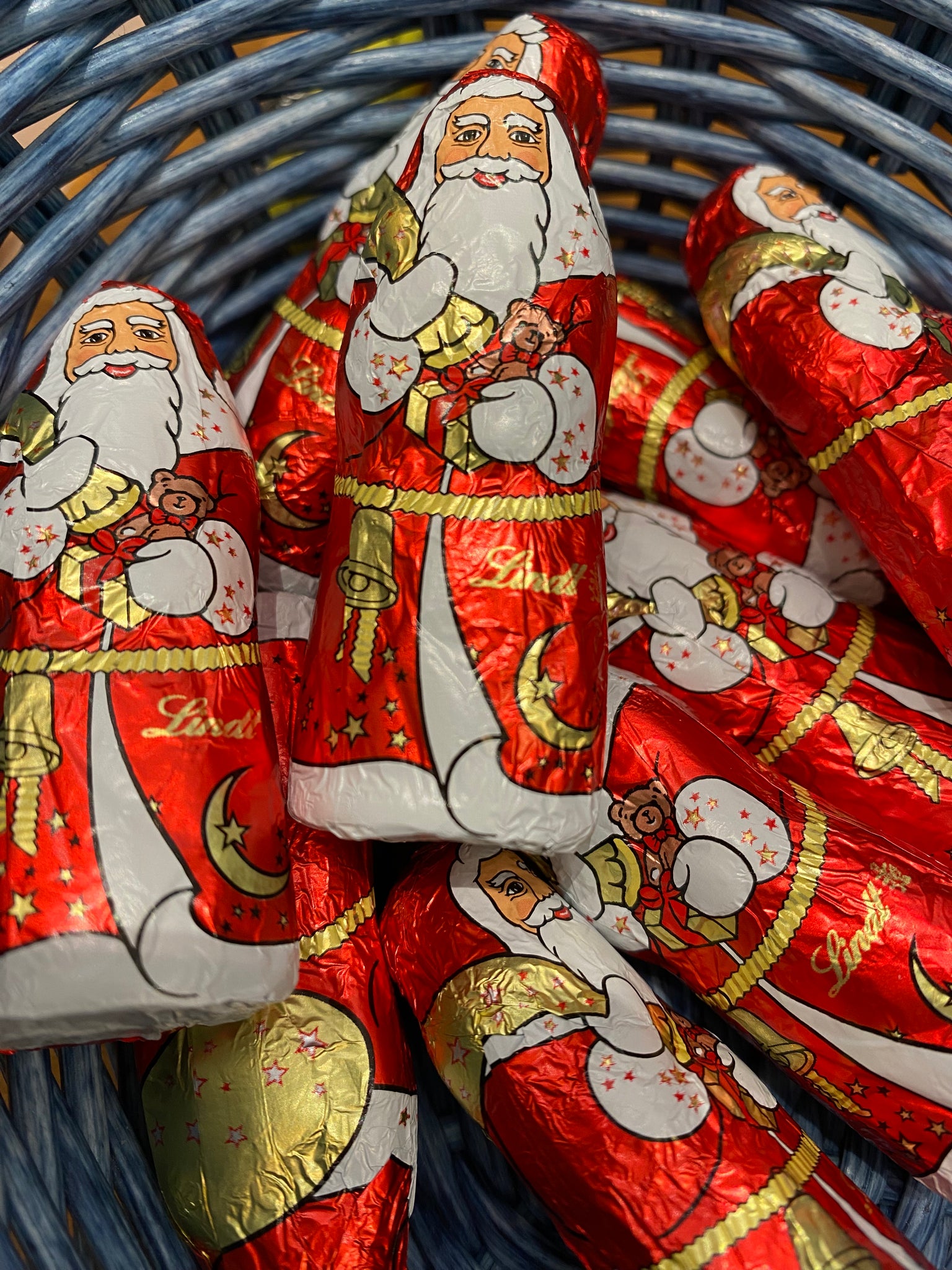 Lindt milk chocolate Santa. Since 1845 the Swiss Master Chocolatiers from Lindt have been creating the finest chocolate and a world-wide reputation for quality. 8 individually wrapped mini Santas in an 80g pack.