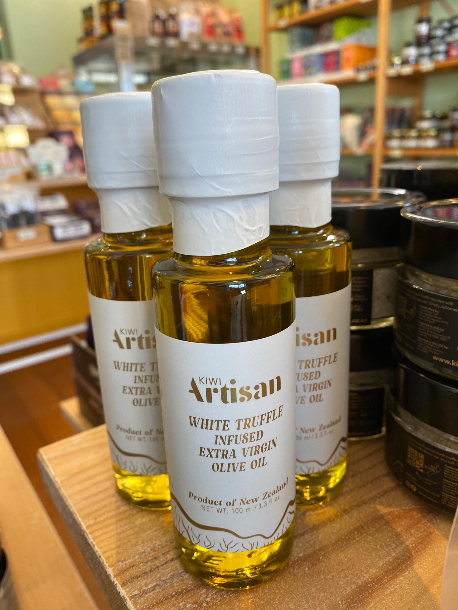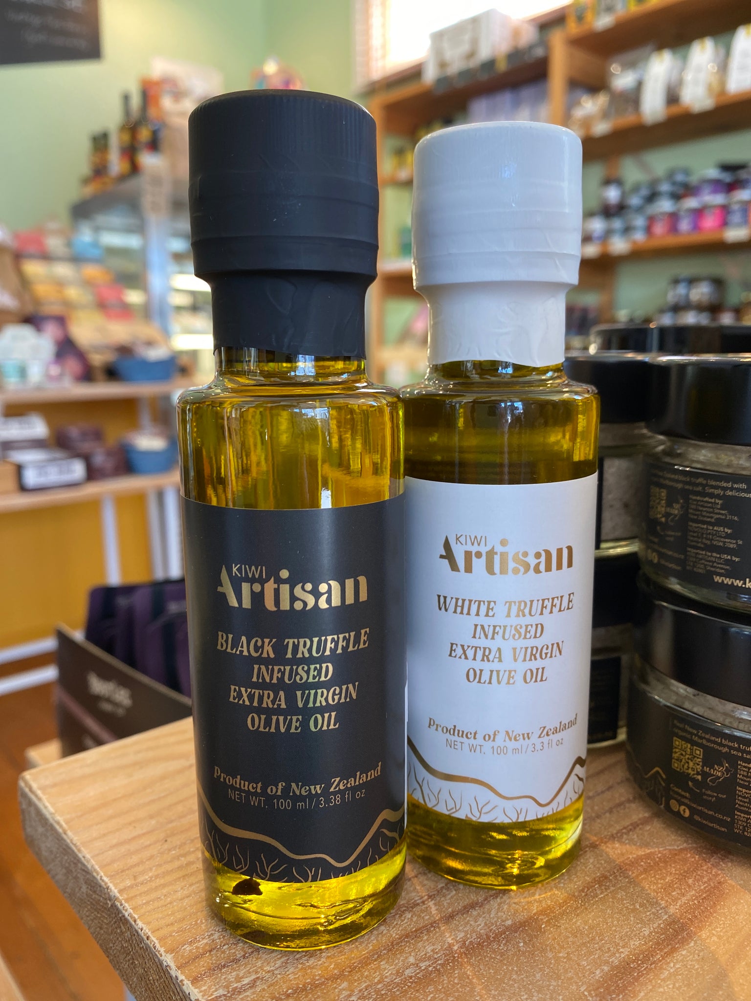 New Zealand’s finest truffle infused oil. Black truffle oil is crafted from New Zealand grown black Périgord truffles and extra virgin olive oil pressed in the North Island. Made by Kiwi Artisan with real truffle, no artificial flavours or chemicals. White truffle oil combines New Zealand cold-pressed extra virgin olive oil with premium Italian white truffle. Deliciously smooth, earthy and luxurious. The perfect addition to elevate any dish. Gluten free, 100ml in glass bottle.